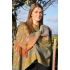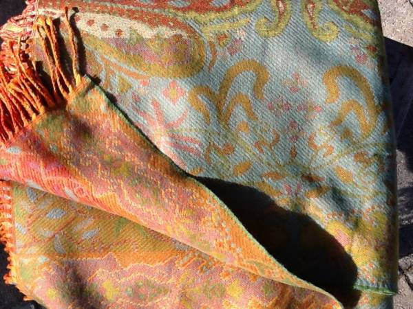 Luxurious & reversible - this wrap looks beautiful on everyone. It is a fringed ruana- the back is squared. This style gives you great coverage for those cool nights. 50" x 55"